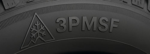 Pour respecter la réglementation pneu hiver, il faut des pneus portant le logo 3PMSF (3 Peak Mountain Snow Flake).