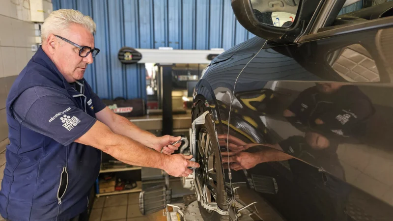Après un changement de pneus, pensez au parallélisme : ça évite d’user un pneu neuf en quelques milliers de kilomètres seulement.